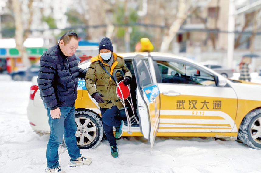 “今天真是亏了‘邢刘宝爱心车队’的孙班长!外面霰雪飘撒,地面这么滑,没有你及时开车来接送,我今天真不知道怎么办呐!”2月22日早上7时,武汉四唯街道六合社区孤寡老人陈文胜师傅去透析路上感慨道。