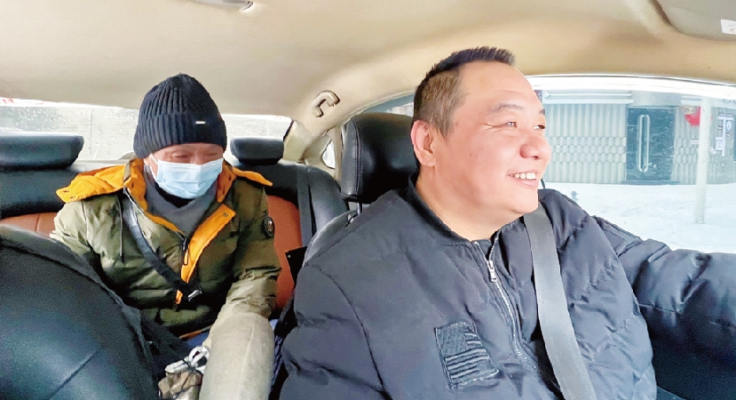 陈文胜师傅是武汉四唯街道六合社区孤寡老人,患有重症肾衰竭,卧床多年,每周二、四、六都要去医院透析。近两年来,一直是大通“邢刘宝 爱心车队”的队员们,免费接送陈师 傅往返医院与小区,保障老人就医。 由于今天气温低,下着霰雪,路非 常滑。车队孙华强师傅怕耽误事, 早上5点多钟就从武昌出发,平时30 分钟的路程,今天花了1个多小时, 但还是准点接到了陈文胜师傅。