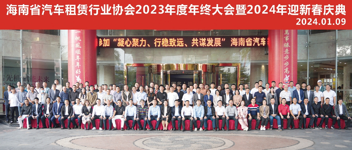 “海南省汽车租赁行业协会2023年度年终大会暨2024年迎新春庆典”于2024年1月9日下午15:00在海口市明光胜意大酒店顺利召开。此次会议的主题是“凝心聚力、行稳致远、共谋发展”。出席此次大会会议的主要领导和嘉宾有:海南省旅游投资发展有限公司党委副书记、总经理鬲永奇;海南省交通运输厅处长杨冬凉;海南省道路运输局副局长廖七生、科长罗利明;海口市综合行政执法局交通港航行政执法支队大队长陈春华;海口市道路运输管理处副处长李彬、科长陈照煌;三亚市道路和港航运输服务中心科长王江泽;海南省汽车租赁行业协会会长符君;三亚汽车租赁行业协会副会长吕新;飞猪旅行租车公共事业部总监李雪芳;海马马邦出行科技有限公司李鹏;人保财险海南分公司副总经理姚理金以及海南省汽车租赁行业协会的各位会员。